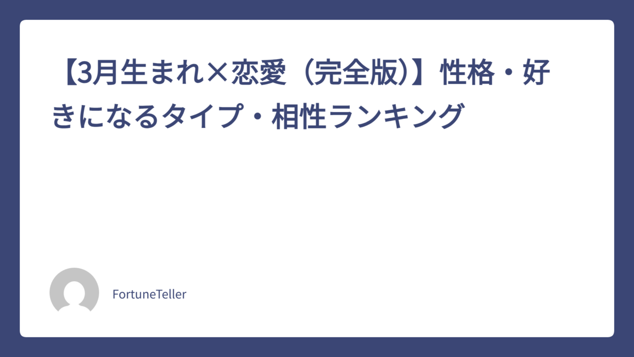 3月生まれの恋愛は、ざっくり言うと「共感(感受性)」と「理想(ロマン)」が強い一方で、タイプによっては「行動(突破力)」も濃く出ます。たとえば、3/1は「夢と直感に生きるロマンチスト」[Source]、3/18は「理想主義と行動力を兼ね備えた直感型リーダー」[Source]、3/25は「行動力と探究心を兼ね備えた“挑戦者”」[Source] のように、同じ3月でも“愛し方”が少しずつ違います。